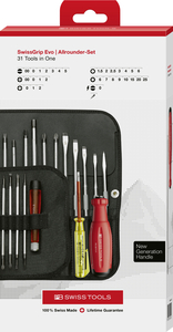 SwissGrip Evo screwdrivers, set with interchangeable blades in an imitation leather case – 31 tools in 1