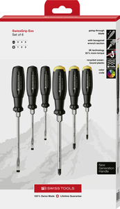 SwissGrip Evo 螺丝刀,带六角凸缘/扳手辅助和贯通式刀杆,套件